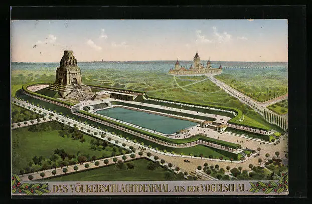 AK Leipzig, Völkerschlachtdenkmal, Aus der Vogelschau