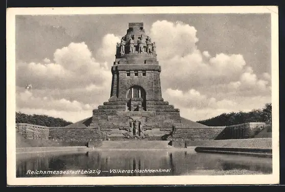 AK Leipzig, Völkerschlachtdenkmal, Blick über das Bassin auf das Denkmal