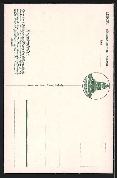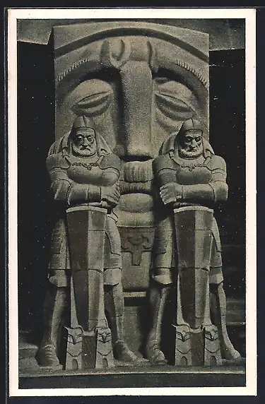 AK Leipzig, Völkerschlachtdenkmal, Kryptapfeiler, einer der 8 Pfeiler in der Krypta des Denkmals mit Schicksalsmaske