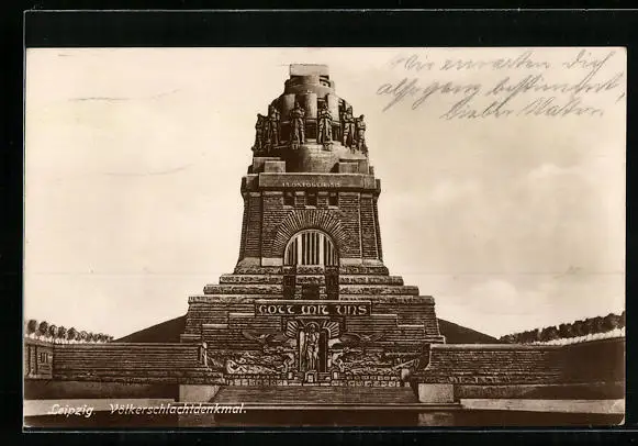 AK Leipzig, Völkerschlachtdenkmal, Vorderansicht aus der Nähe