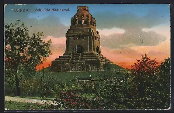 AK Leipzig, Völkerschlachtdenkmal hinter Promenadenweg