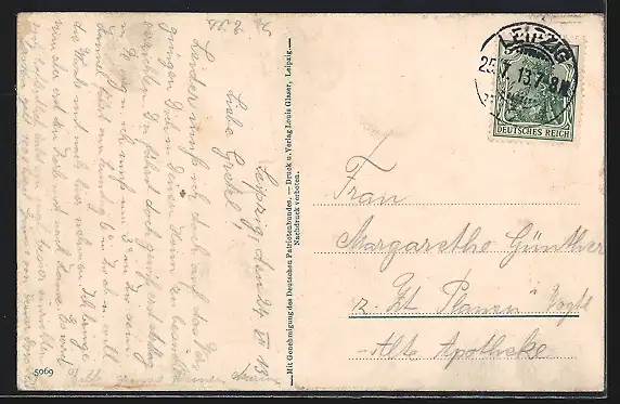 alte Ansichtskarte, gelaufen 1913, Eckknick li. oben, guter Zustand