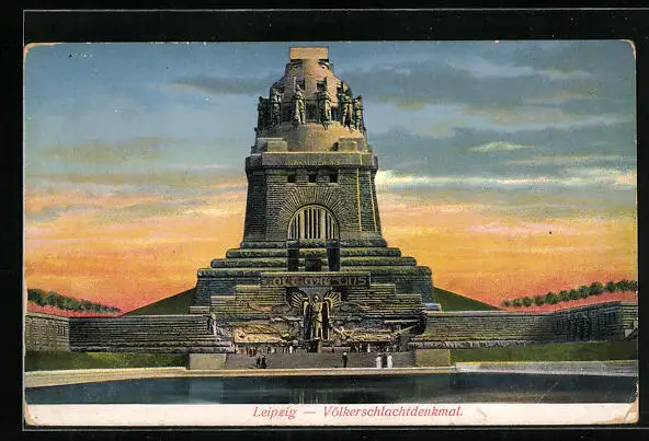 AK Leipzig, Völkerschlachtdenkmal im Abendlicht