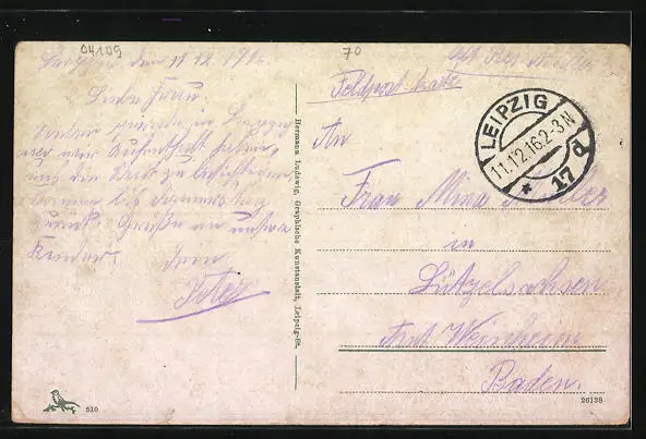 alte Ansichtskarte, gelaufen 1916, Einriss re. unten, guter Zustand