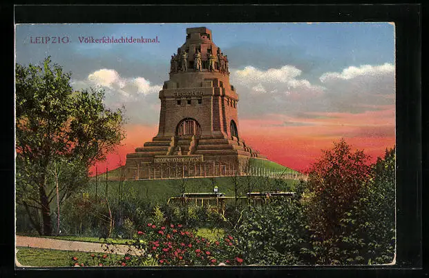 AK Leipzig, Völkerschlachtdenkmal in Abendsonne