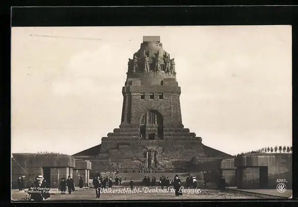 AK Leipzig, Völkerschlachtdenkmal in Frontansicht mit Besuchern