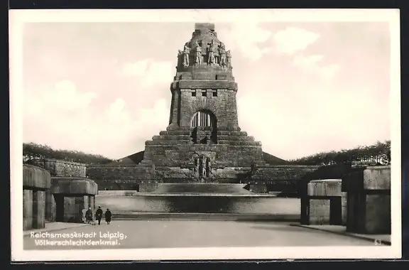 AK Leipzig, Völkerschlachtdenkmal mit Besuchern