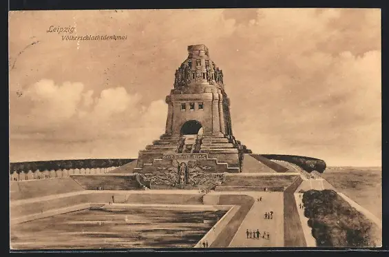 AK Leipzig, Völkerschlachtdenkmal mit Besuchern