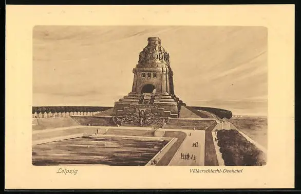 AK Leipzig, Völkerschlachtdenkmal mit Besuchern auf der Promenade
