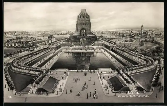 AK Leipzig, Völkerschlachtdenkmal mit Besuchern aus der Vogelschau
