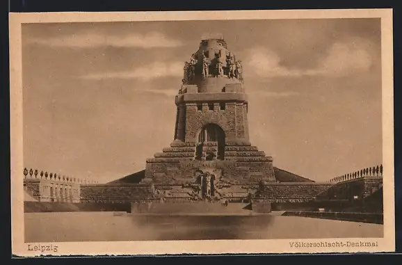 AK Leipzig, Völkerschlachtdenkmal mit Teich