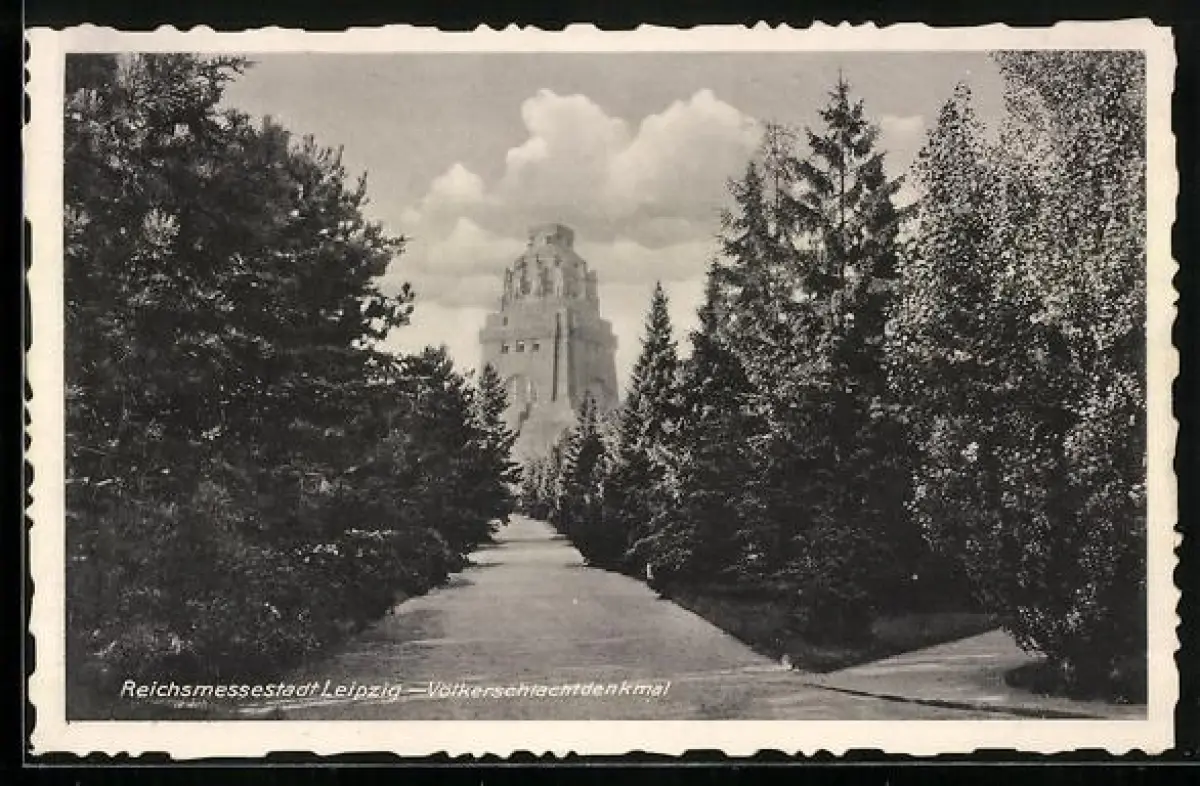 AK Leipzig, Völkerschlachtdenkmal vom Weg aus