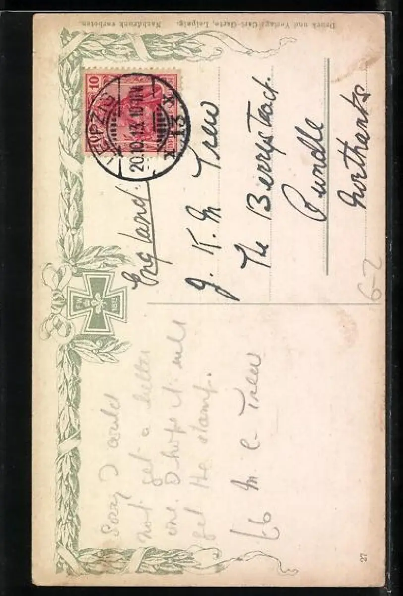 alte Ansichtskarte, gelaufen 1913, Eckknick links oben, guter Zustand