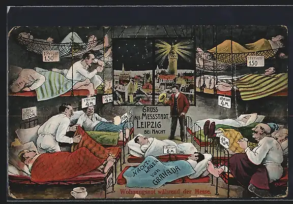 AK Leipzig, Wohnungsnot während der Messe, überfüllter Schlafsaal