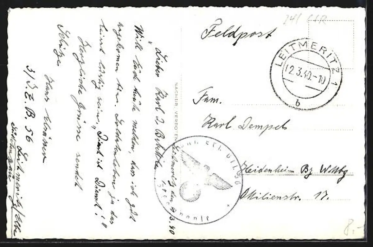 alte Ansichtskarte, gelaufen 1940, Briefmarke entfernt, guter Zustand