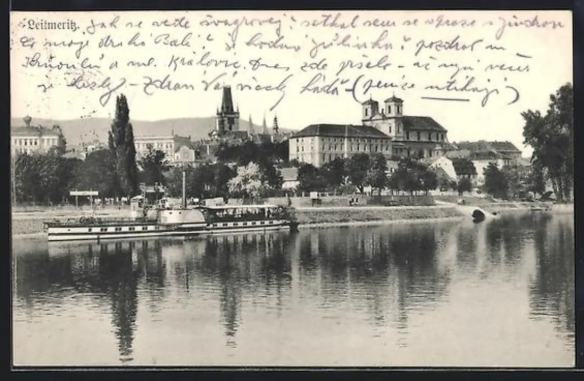 AK Leitmeritz, Flusspartie mit Dampfer