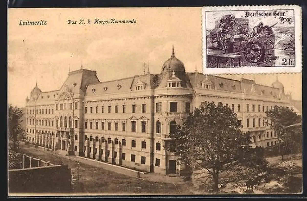 AK Leitmeritz / Litomerice, Blick auf das K. k. Korps-Kommando