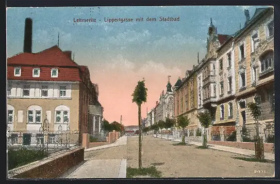 AK Leitmeritz / Litomerice, Lippertgasse mit dem Stadtbad
