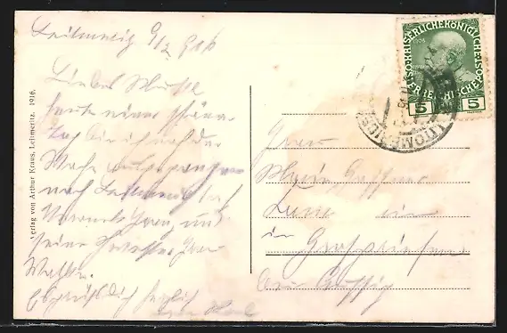 alte Ansichtskarte, gelaufen 1916, rückseitig Oberflächenschaden, Stempelspur, guter Zustand