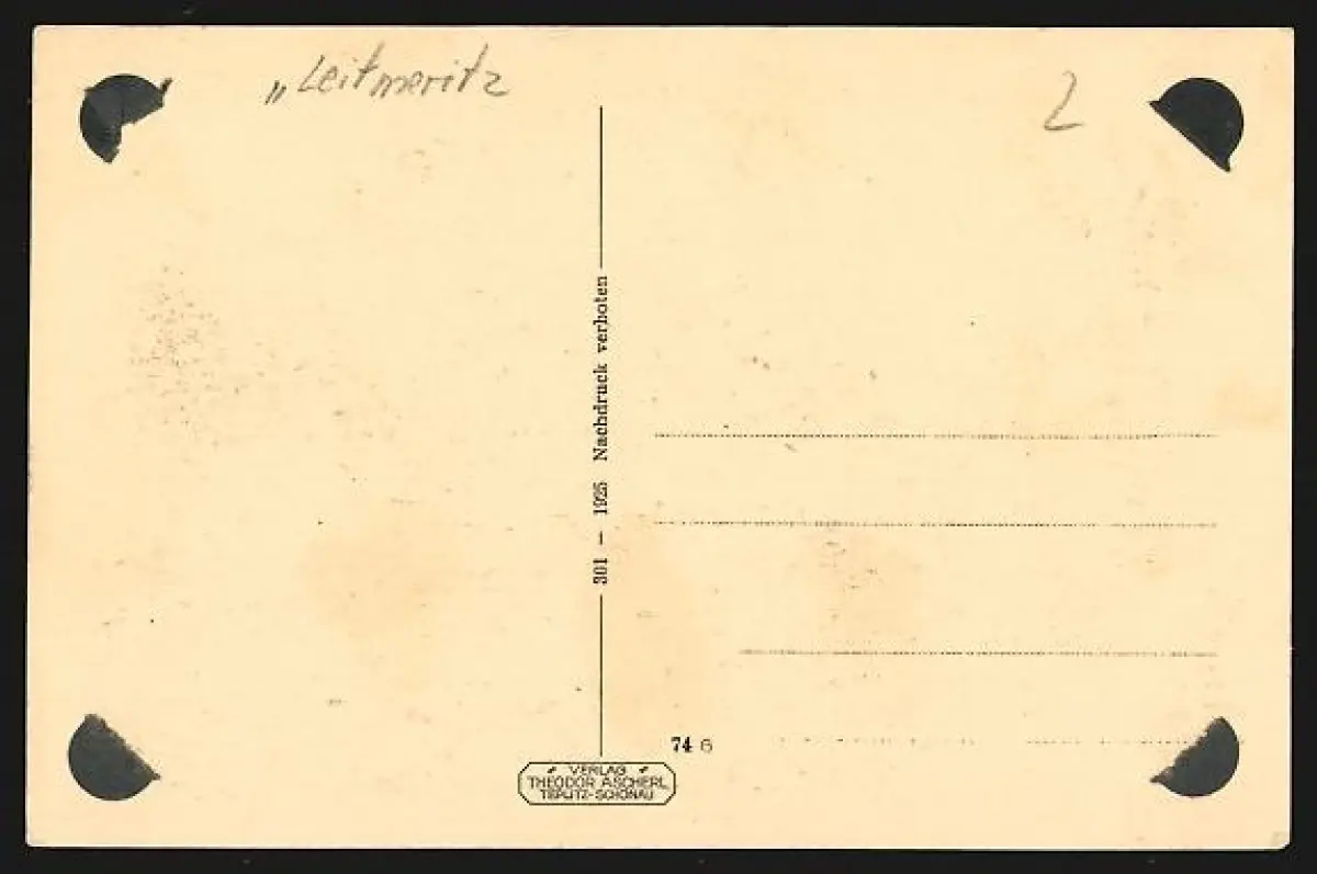 alte Ansichtskarte, ungelaufen, rückseitig Klebe- und Papierreste, guter Zustand