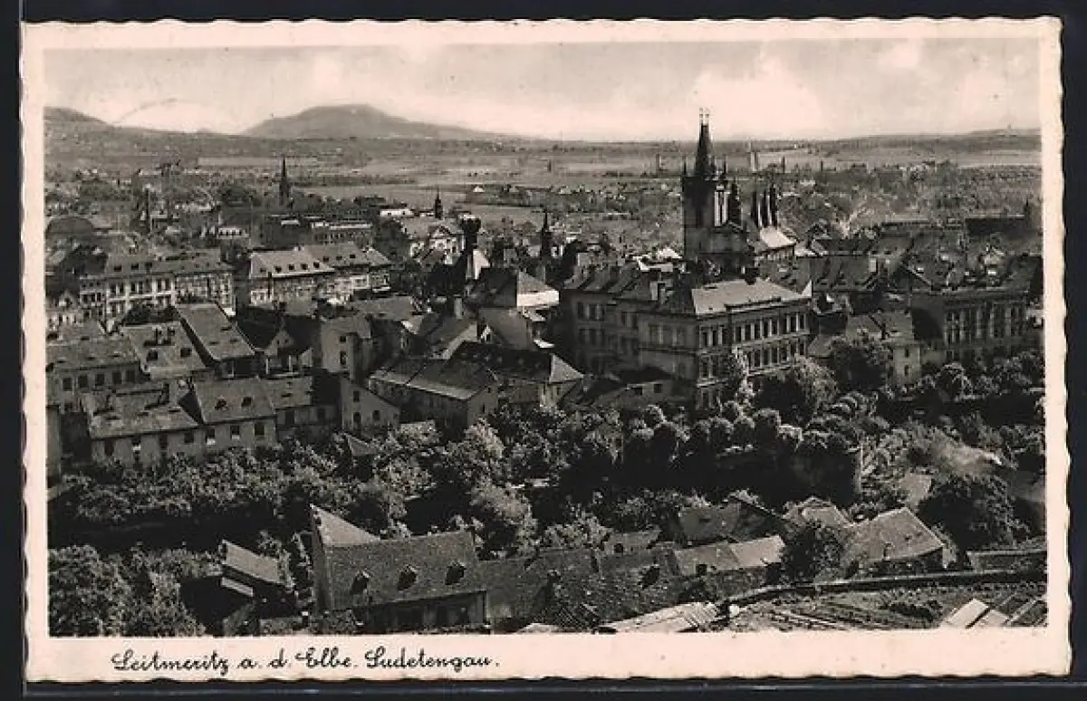 AK Leitmeritz a. d. Elbe, Panorama mit Kirche