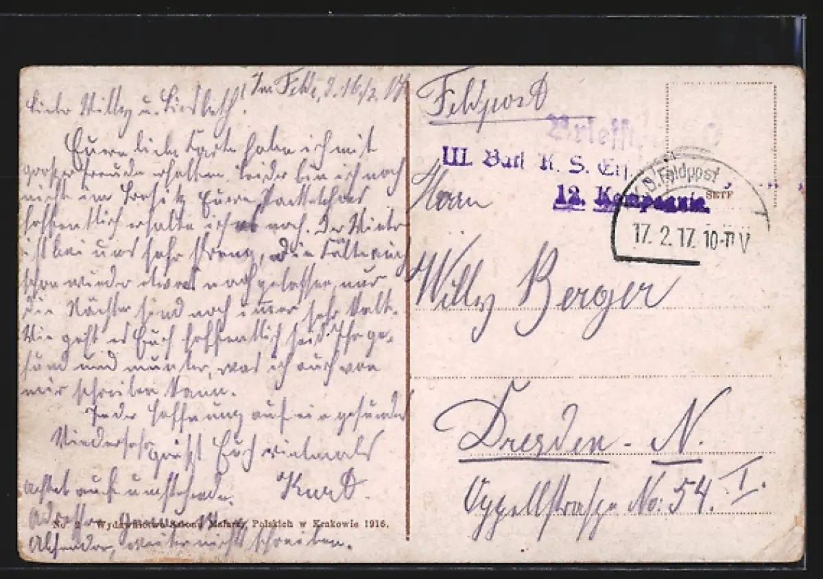 alte Ansichtskarte, gelaufen 1917, Abriebspur u. Eckknick unten li., Eckknick unten re., guter Zustand