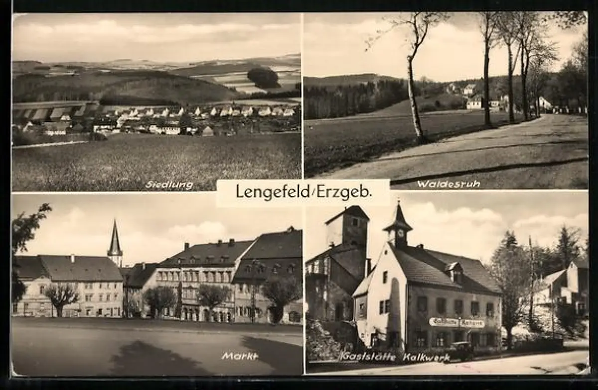 AK Lengefeld / Erzgeb., Ansicht von der Siedlung, Waldesruh, Markt und dem Gasthaus