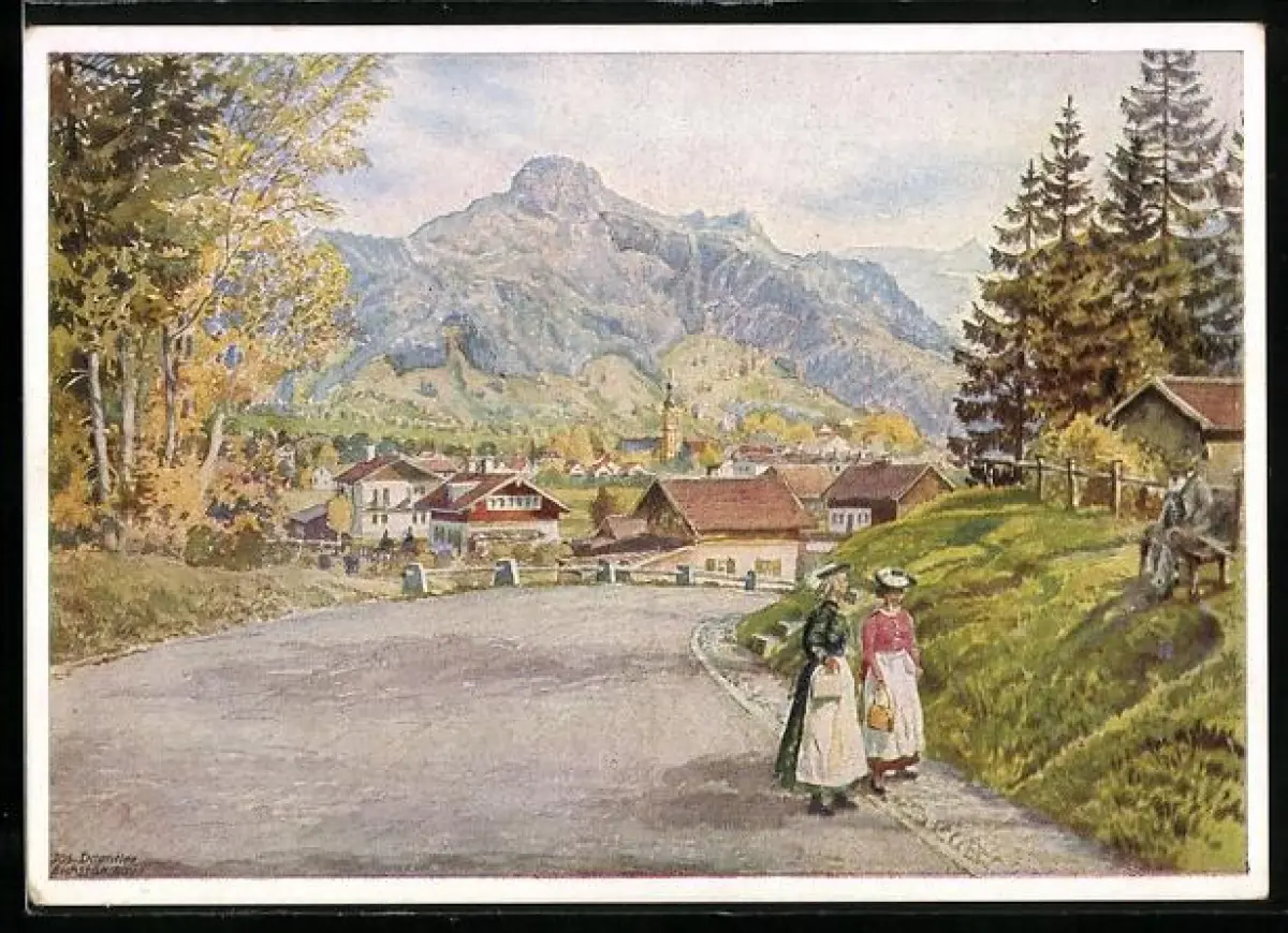 AK Lenggries, Ortspartie mit Geigerstein