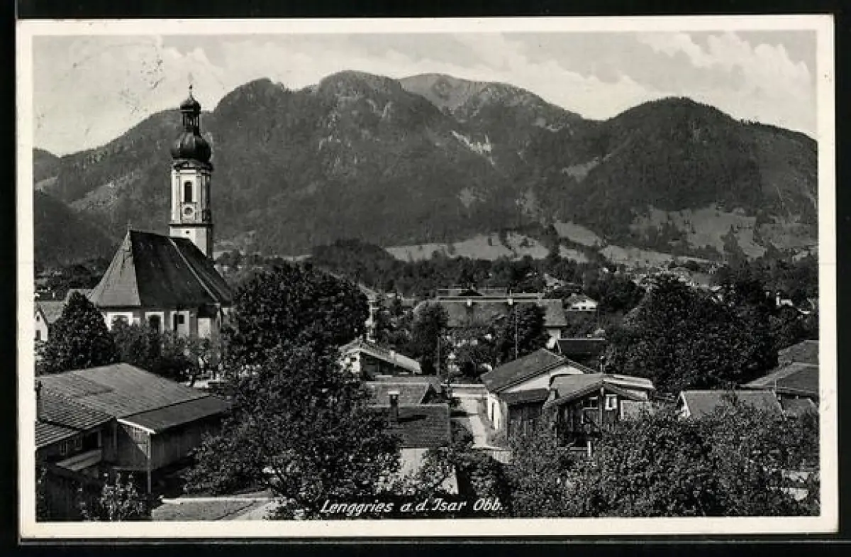 AK Lenggries a.d. Isar, Kirche und Ortsansicht vor Alpenpanorama