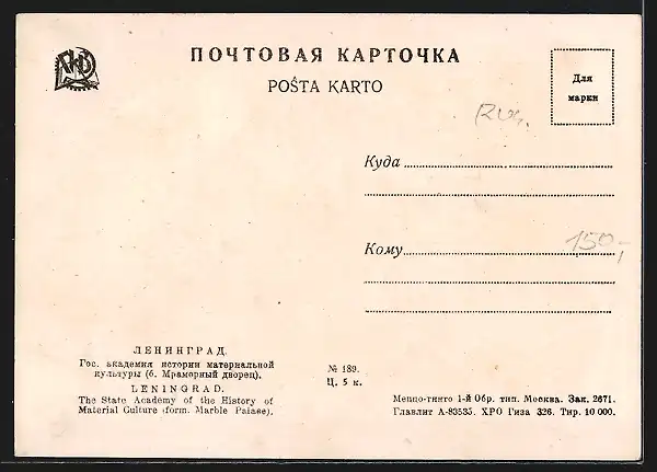 AK Leningrad, State Academy of the History of Martial Culture, form. Marble Palace