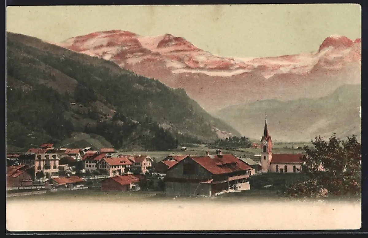 AK Lenk, Dorfpartie mit Kirche und Wildstrubel