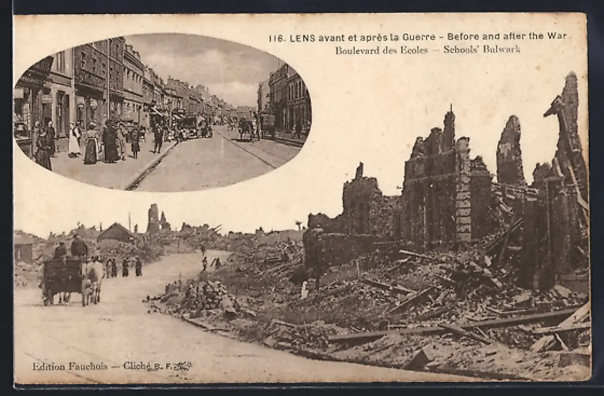AK Lens, Boulevard des Écoles avant et après la guerre