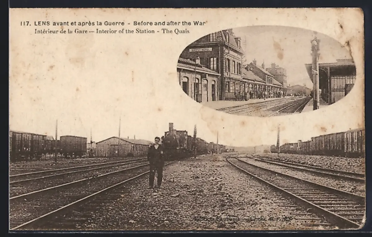 AK Lens, Intérieur de la Gare et les Quais avant et après la Guerre