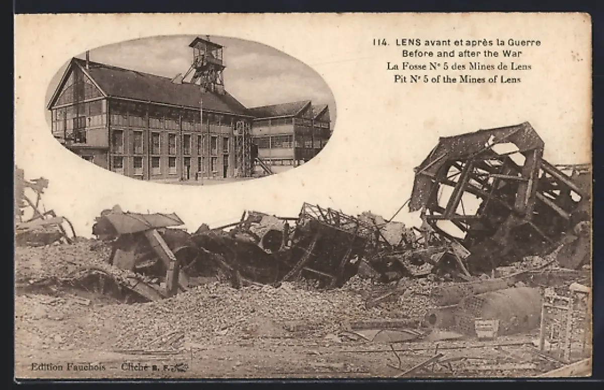 AK Lens, La Fosse N° 5 des Mines de Lens avant et après la guerre