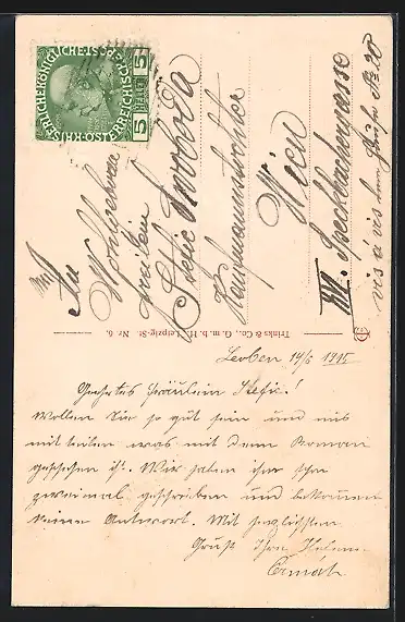 alte Ansichtskarte, gelaufen 1915, Bugspur oben horizontal, guter Zustand
