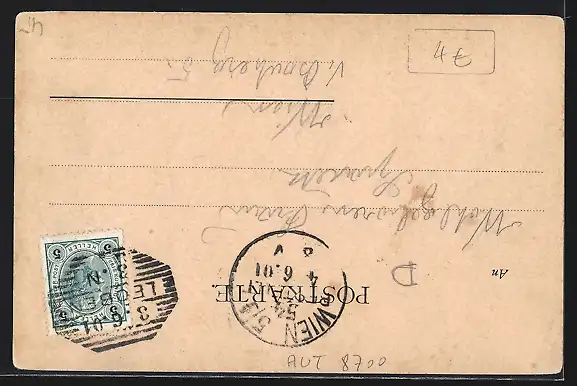 gelaufen 1901, Eckknicke re. oben und li. unten, guter Zustand