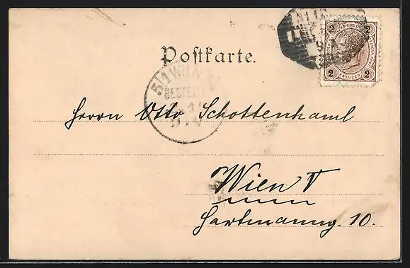 alte Ansichtskarte, gelaufen 1899, Stempelspur, guter Zustand