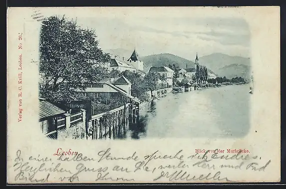 AK Leoben, Blick von der Murbrücke auf den Ort