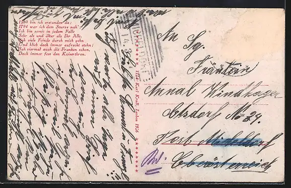 alte Ansichtskarte, gelaufen 1947, Briefmarke entfernt, rückseitig Oberflächenschaden, guter Zustand