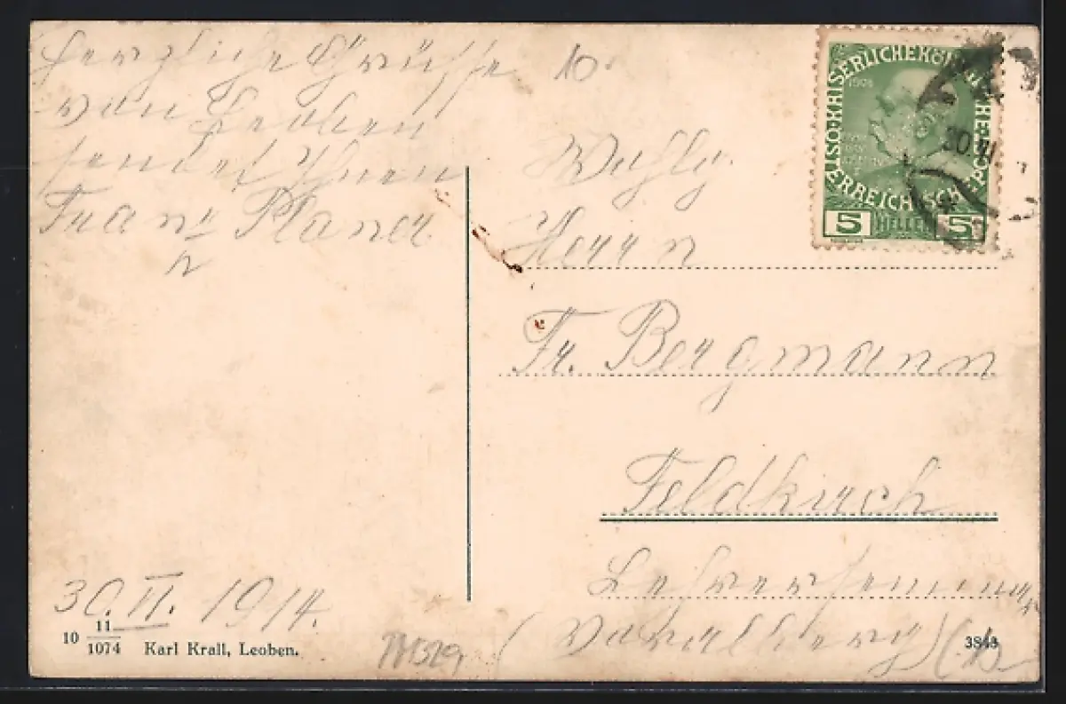 alte Ansichtskarte, gelaufen 1914, Stempelspur, guter Zustand