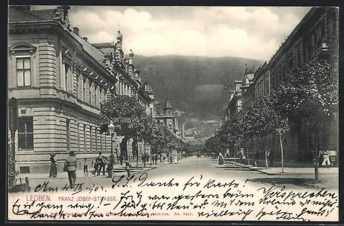 AK Leoben, Franz Josef-Strasse mit Passanten