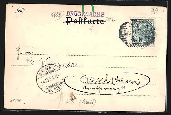 alte Ansichtskarte, gelaufen 1900, Stecknadellöcher oben li. und re. und unten re., guter Zustand
