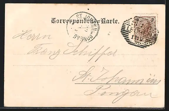 alte Ansichtskarte, gelaufen 1897, Stempelspur, guter Zustand