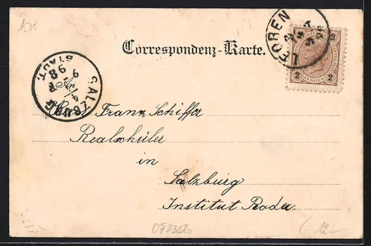 alte Ansichtskarte, gelaufen 1898, guter Zustand