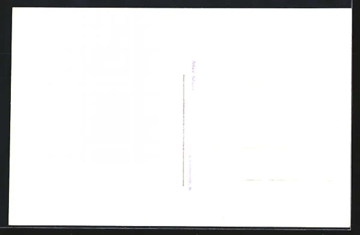 Personenbezogene Daten auf der Rückseite der Karte wurden durch blauen Textmarker unkenntlich gemacht. Die blauen Stellen sind auf die Vorderseite durchgeweicht und wirken sich negativ auf das Postkartenfoto aus