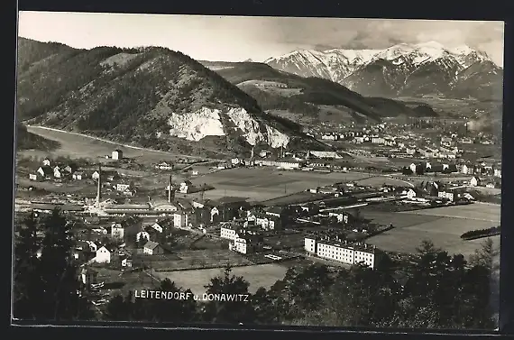 AK Leoben, Leitendorf mit Donawitz und Bergpanorama aus der Vogelschau