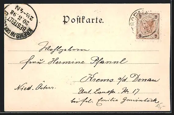 alte Ansichtskarte, gelaufen 1898, guter Zustand