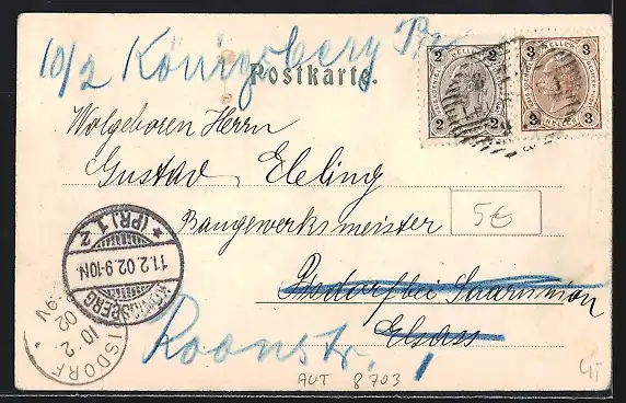 alte Ansichtskarte, gelaufen 1902, Stempelspur, guter Zustand