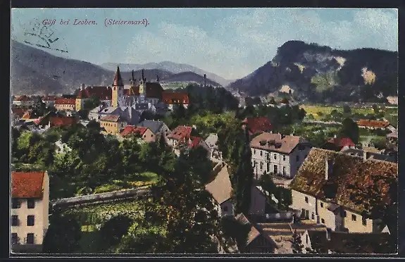 AK Leoben /Steiermark, Ortsansicht gegen die Berge
