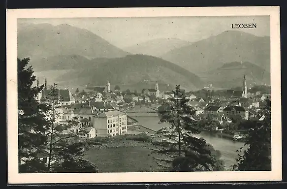 AK Leoben, Teilansicht, Flusspartie und Bergpanorama